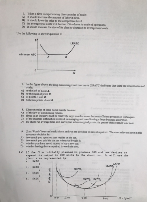Which of the following provides the best explanation for diseconomies of scale?. Long-run economies of scale exist when the long-run average cost curve. A company needs to determine the net effect of. DShort-run average cost increases as output increases.